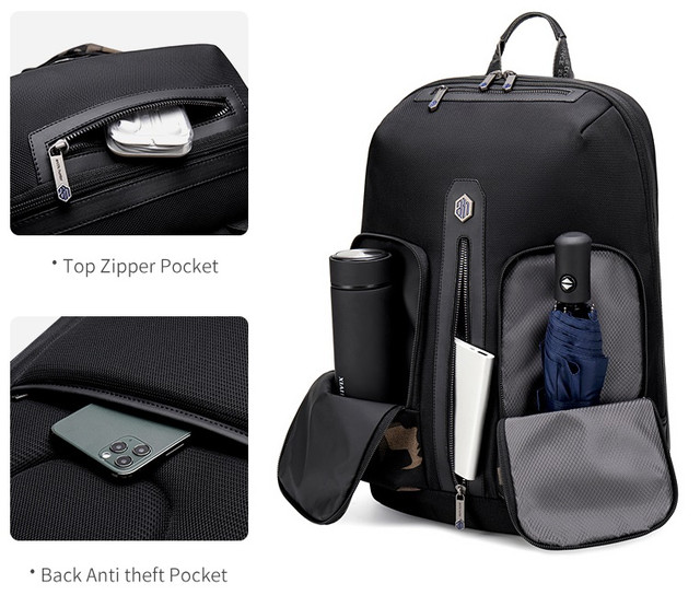 - Функціональність – це чотири кишені на блискавці спереду і один кишеню-протикрадій ззаду. Основне відділення має кишеню середнього розміру і кишеню для ноутбука до 15,6" з лямкою для фіксації на липучці і демпфуючими удари прокладками. Ззаду є лямка для кріплення рюкзака на ручку валізи і зверху розташована зручна ручка для перенесення.